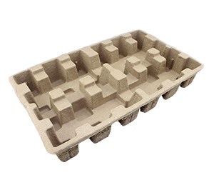 纸浆托的工艺与用途:这种制品以废纸为原料,经过碎浆、配浆等工艺调配成一定比例浓度的浆料,将其在模塑机上按不同的形状需求,由模具塑造出一定形状,然后干燥成定型。这种制品有四大优势:原料来源广泛,废纸,包括板纸、废纸箱纸、废白边纸等都可利用;其制作过程对环境无害;可以回收再生利用;体积比发泡塑料小,可重叠放置,方便运输。纸浆模塑制品,除作餐盒、餐具外,更多地做工业缓冲包装,可作为鸡蛋、水果、精密器件、易破易碎的玻璃、陶瓷制品、工艺品等的包装衬垫,有良好的缓冲保护性能。